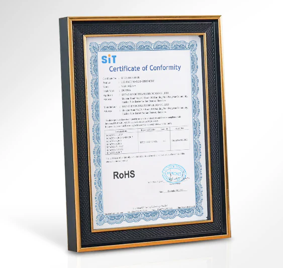 A RoHS certificate indicates that the product complies with EU regulations on restricting the use of specific hazardous substances.